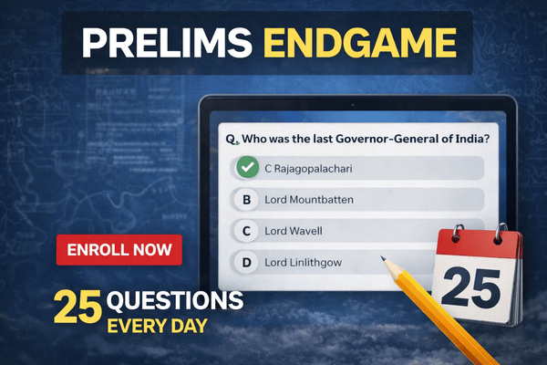 The Prelims Endgame is a structured revision program built around 2200 carefully designed MCQs released daily until UPSC Prelims.